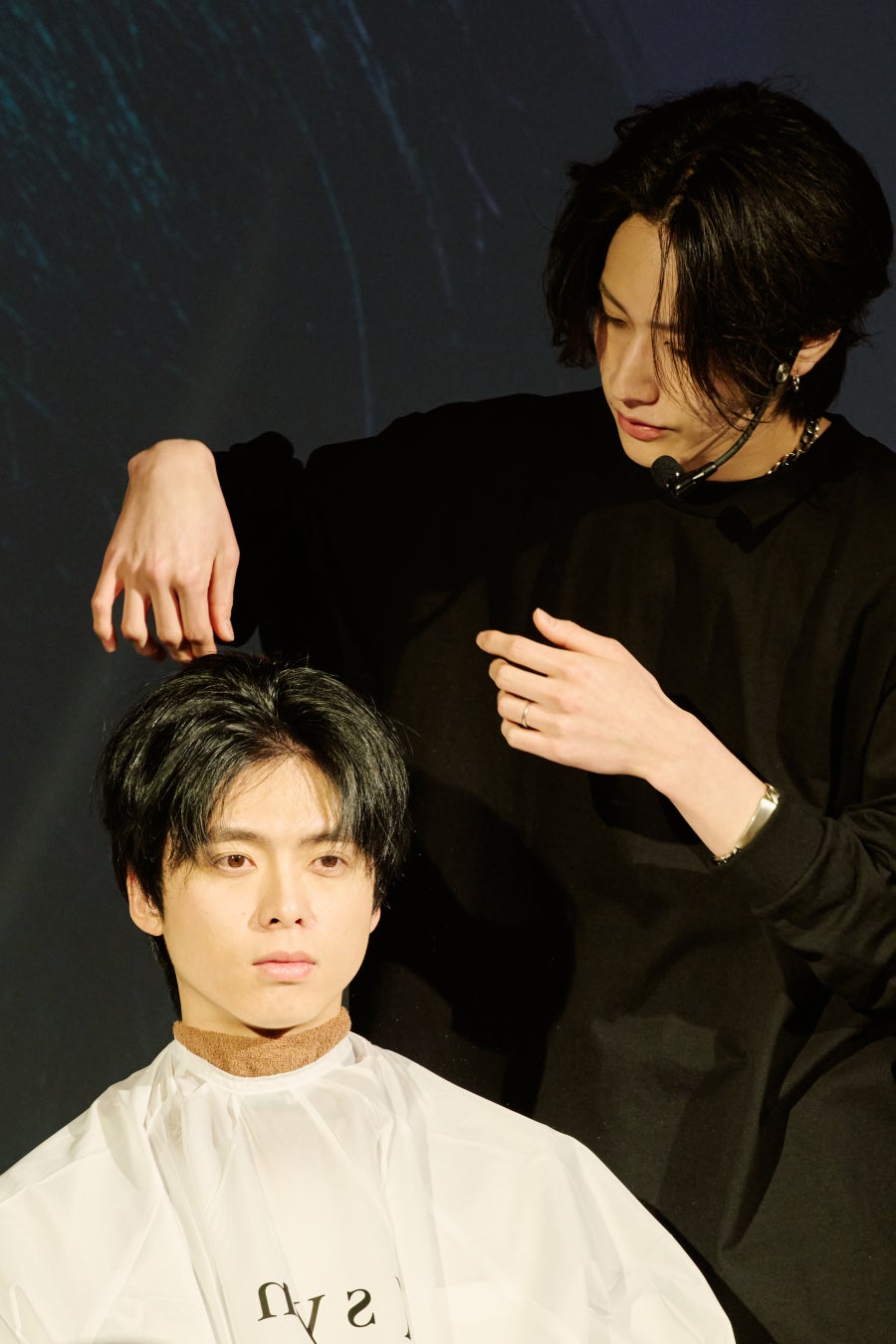 デモンストレーションが始まると、「まずは、髪全体を濡らしてシャンプー液が馴染みやすいようにしっかりと予洗いしましょう。」とシャンプー前の予洗いのポイントを解説。続いて、本商品でシャンプーを行う際には、「髪の摩擦を抑えるために濃密な泡で洗ったほうが良いのですが、このシャンプーは泡立ちが濃密で柔らかいんですよね。」と本商品の特長でもある泡の質感についてもコメントしました。シャンプー時の洗い方については、「襟足の部分は汚れが溜まりやすいので意識して洗ってほしいです。また、センターパートで重要となる前髪の部分は汚れが溜まると髪が立ち上がりにくくなるので、根元もしっかりと洗いましょう。」と解説されました。シャンプー後はパックコンディショナーで地肌を保湿。本商品の特長である、地肌に直接パックコンディショナーを塗布する際には、「直接地肌に塗布するのは僕も抵抗感があったのですが、地肌そのものが保湿される感じがあるので付ければ付けるほど良いなと思いました。メンズシャンプーは特に頭皮が乾燥しやすいイメージなので、このようなコンディショナーは必要だと思います。」とパックコンディショナーで地肌を保湿することの重要性についてコメントされました。「SCALP D NEXT+」のパックコンディショナーは、すぐに洗い流さず3分程度パックすることを推奨しています。ヘアパックを行っている際、司会からの「メンズシャンプーを使うメリットとは何が挙げられますか?」という質問に対して、齋藤さんは「女性向けのシャンプーだと洗い上がりの質感の重さが髪の立ち上がりに影響してしまいがちなものも多いので、メンズシャンプーは無駄なベタつき感なく、ほどよい軽さに仕上げられるのがメリットだと思います。」と回答されました。