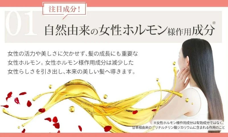 加齢による女性ホルモンの低下に着目した育毛剤はHairmoreだけ。