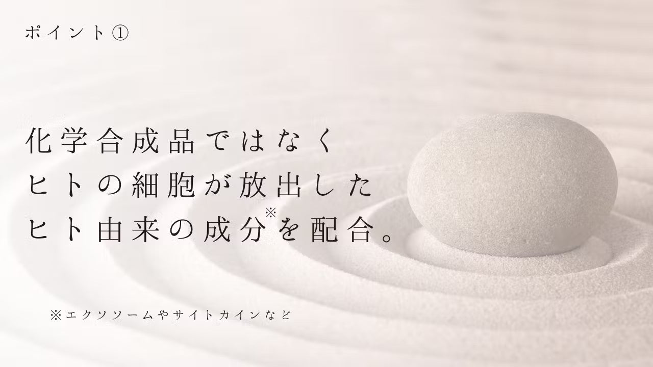 一般的な化粧品とは違い、化学合成品を使わずヒト由来の成分を配合。肌の美と健康を追求した「真のスキンケア&エイジングケア商品」となっております。