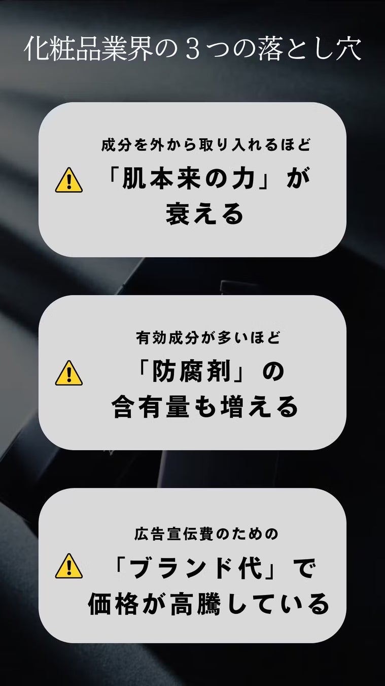 これら3つの落とし穴を全て解消した化粧品を作ろう。