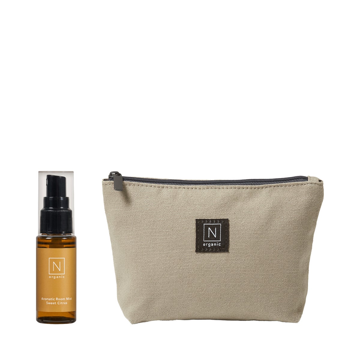 をプレゼントいたします。 アロマスプレーはファブリックスプレーとして家具や寝具に、気分を変えたい時などにN organicの定番の香りでリフレッシュ。コットンポーチはスキンケアアイテムのミニサイズを入れるトラベル用にも、メイクポーチとしても使いやすいサイズ感で人気の定番商品です。
