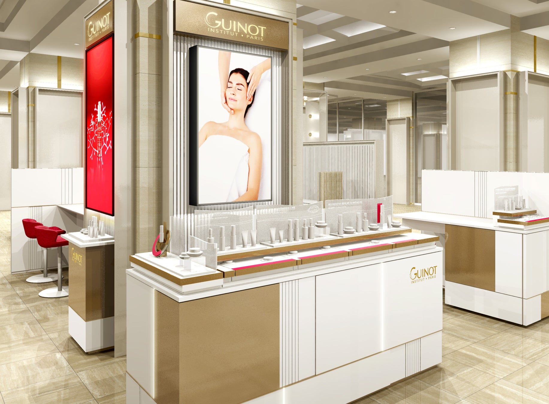 「Guinot 日本橋髙島屋店」は、日本橋髙島屋S.C. 本館1階 化粧品売場に2025年3月7日(金)開業。AI搭載のスキンアナライザーにてお客様のその日の肌状態を確認後、ギノーおすすめのお手入れ方法を体験できるキャビンを併設したギノーブランドの世界観を体感できる、洗練された空間デザインが特徴です。 肌を熟知したビューティーライフパートナーとエステティシャンが常駐し「ギノー・メソッド」と言われる丁寧なカウンセリングとエステティックサービスをご提供いたします。