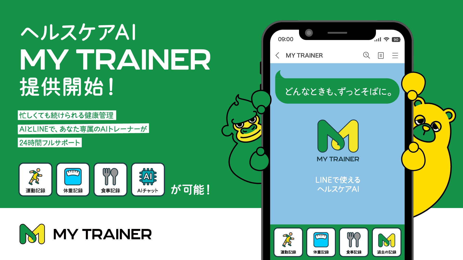 「MY TRAINER」は、AIを活用してパーソナルトレーナーの指導を最適化し、個々の利用者に合わせたトレーニングと食事管理を提供するヘルスケアプラットフォームです。専用アプリ不要で、LINEを通じて手軽に利用できます。