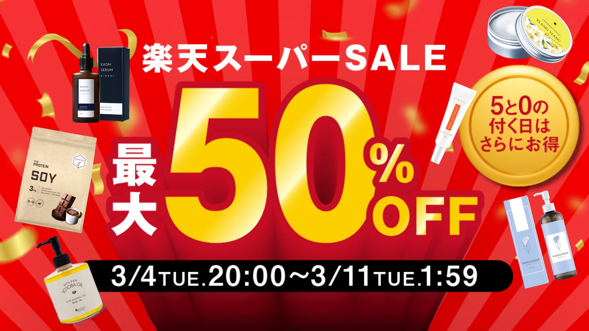 最大50%OFFの超お得な楽天スーパーSALEが3/4(火) 20:00〜3/11(火) 1:59まで開催!