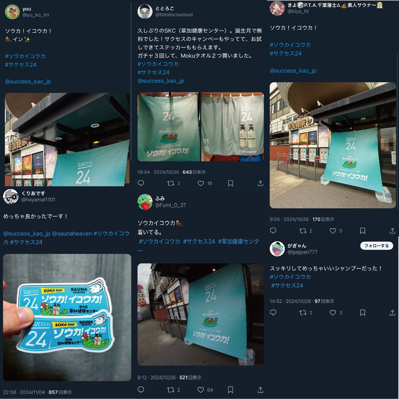 ・2024年10月25日(金)〜11月10日(日)に行われた埼玉県草加市のサウナが人気の2施設「湯乃泉 草加健康センター」と「サウナヘヴン草加」にて、「サクセス」商品を体験できる特別イベントを開催いたしました。