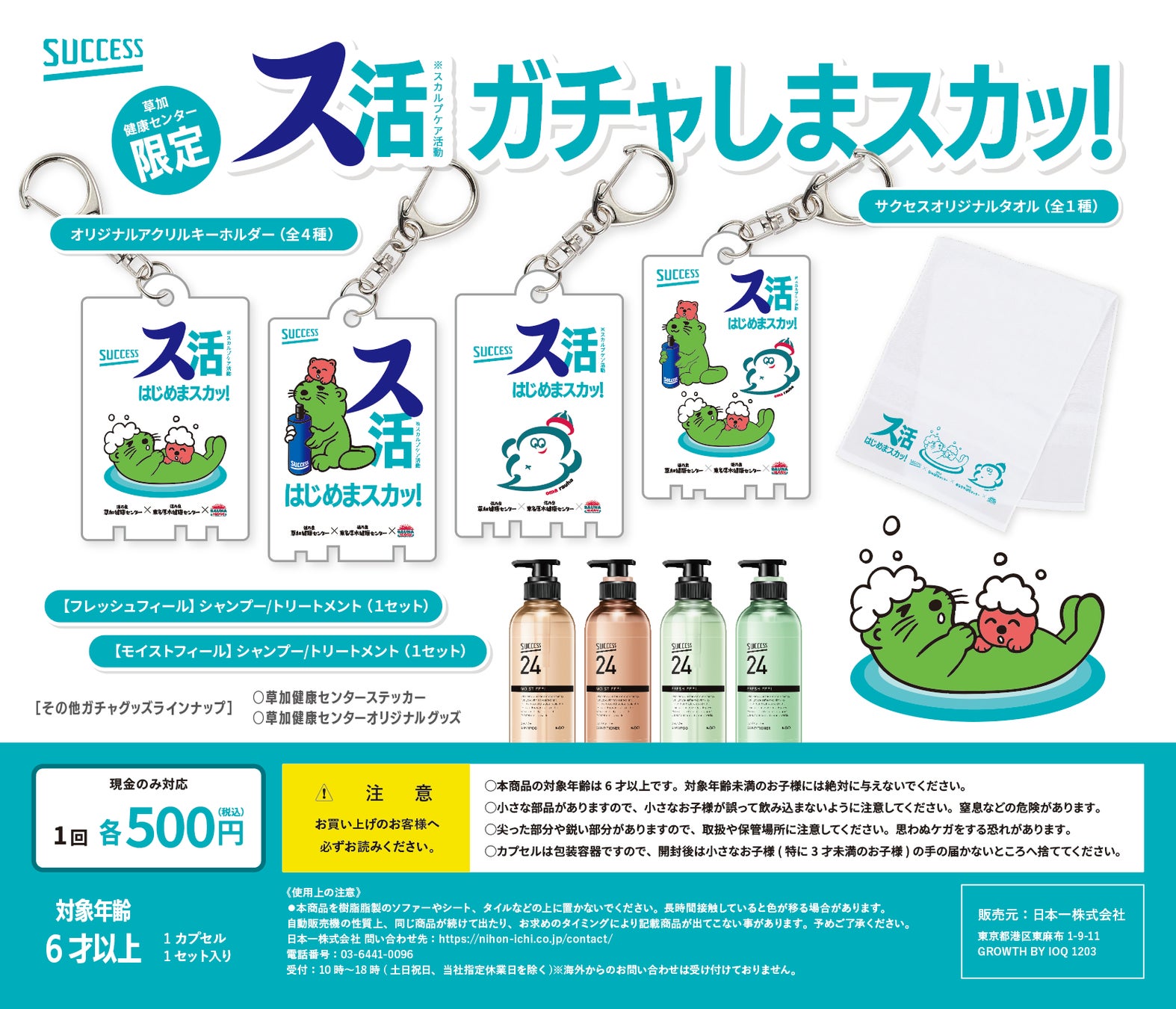 ◼︎期間中は「サクセス髪を育てるチャージエッセンス【医薬部外品】」「サクセス24 シャンプー&コンディショナー」の商品体験の他、限定ガチャや期間限定「サクセスビンゴ大会」、サウナで頭皮ケア「モミ活」イベント、第二弾シークレット草加ツアー「サクセス総会」も開催!