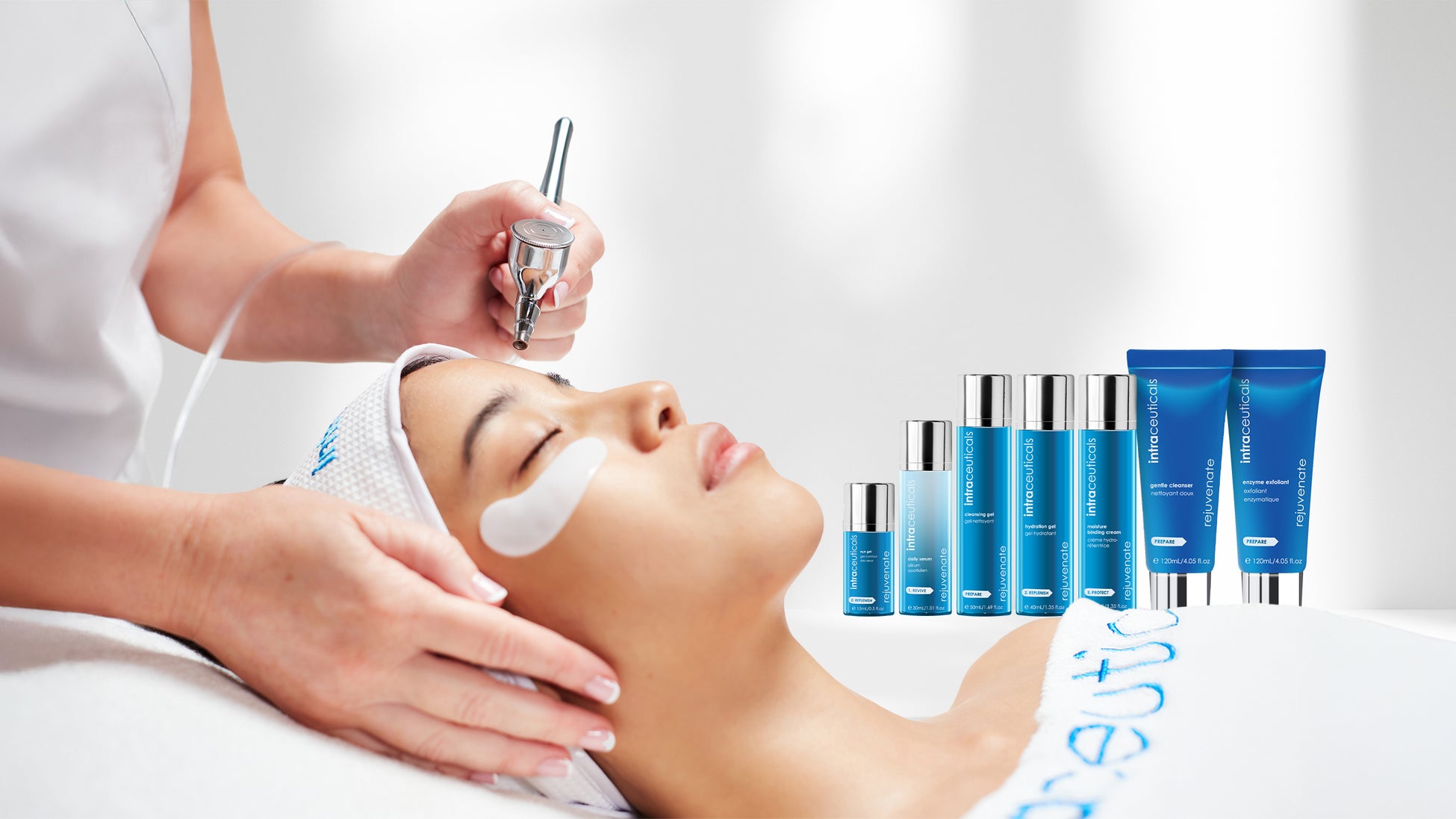 俳優たちが最高の状態をキープできるよう、フェイシャル後にはイントラシューティカルの3ステップ保湿システムを使用しています。この組み合わせで、肌の水分を閉じ込め、輝きを長く保つことができます。」