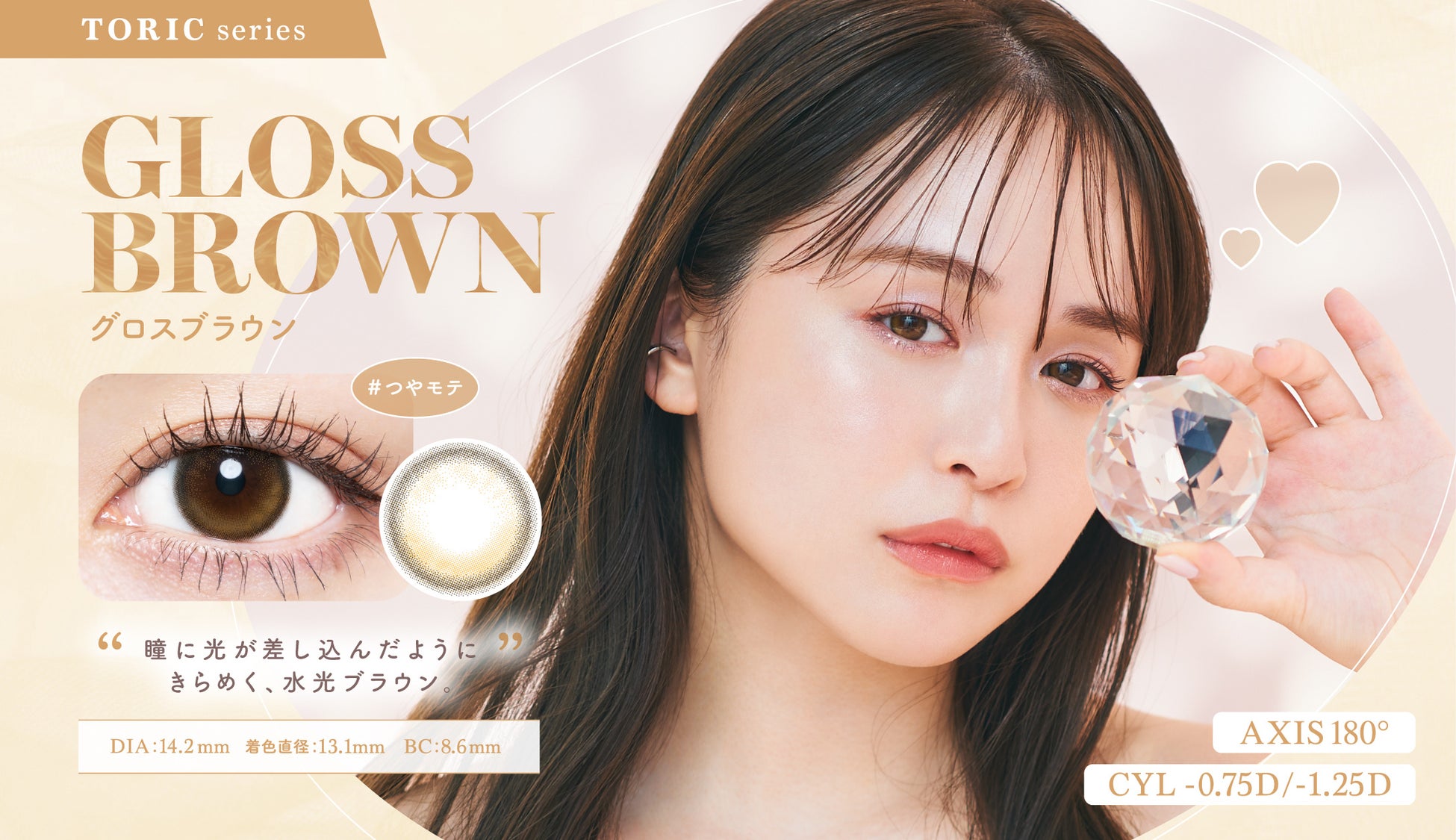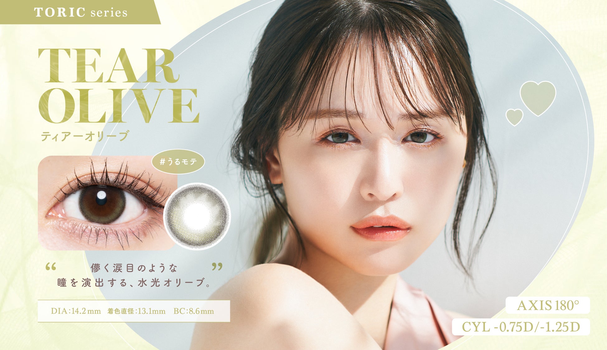 ブランド内人気NO.1カラーの「ベイビーブラウン」、韓国風うるつや水光ブラウンの「グロスブラウン」、儚げな瞳を演出する「ティアーオリーブ」と乱視の方でもあざとく、可愛くなれるラインナップとなっております。