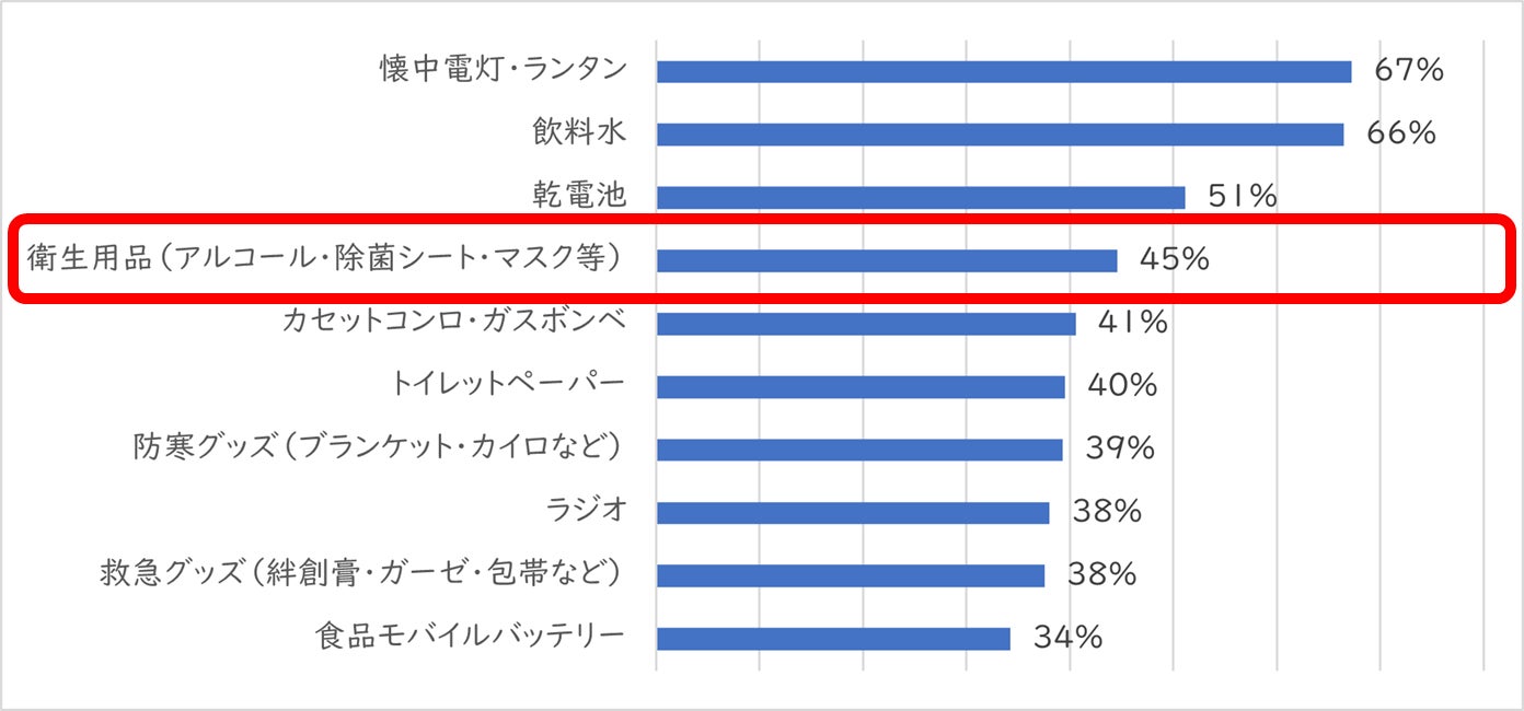 ・しかしながら、全体の半数以上が、防災対策として「日用品」「衛生用品」を備えていない