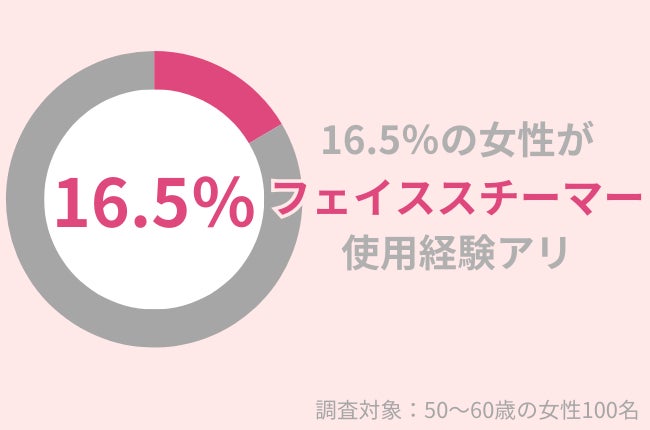 調査の結果、16.5%の50代女性がフェイススチーマーを使用したことがあるとわかりました。スチーマーは必ずしも使用しなければならないわけではありません。むしろ肌トラブルを悪化させる可能性もあるため、敏感肌やニキビ肌の方には推奨しておりません。