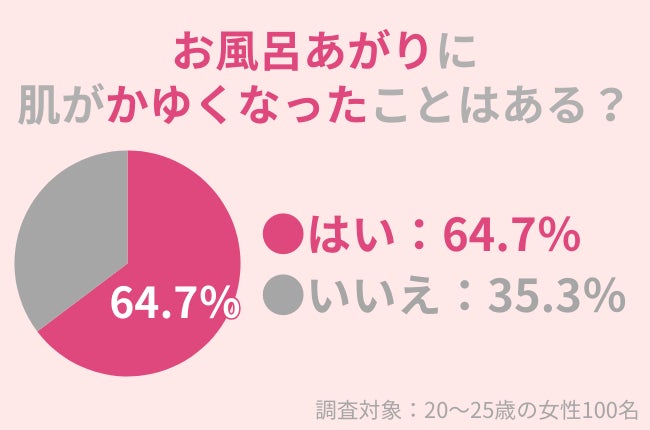 調査の結果、約65%の20〜25歳の女性がお風呂上がりに肌のかゆみを感じたことがあるとわかりました。