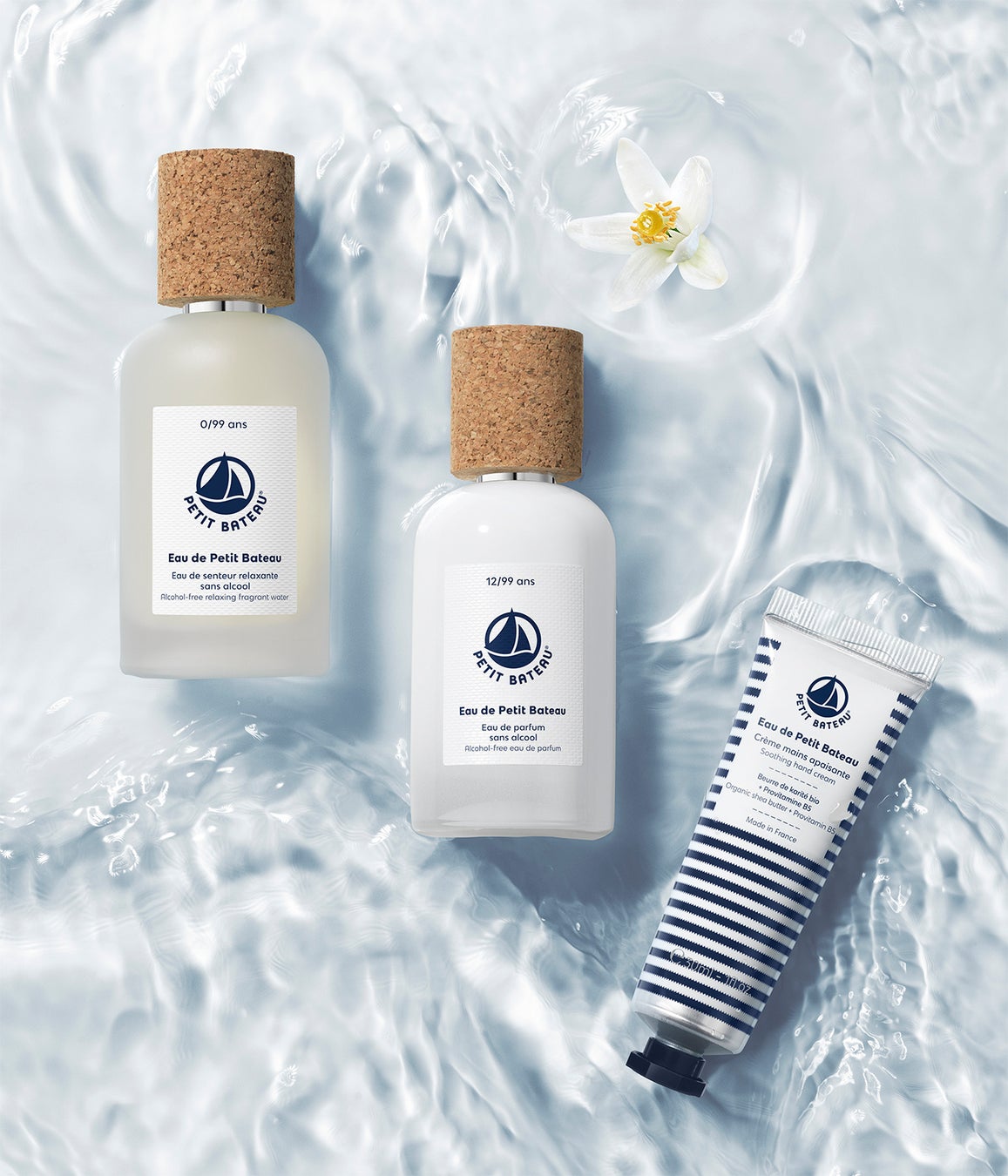 香り成分に、プチバトーのシグネチャーフレグランス「オー・ド・プチバトー」を贅沢に使用。「オー・ド・プチバトー」はお肌の敏感な新生児から使用できるフレグランス*⁶で、アルコールや不要な添加物を含んでいません。