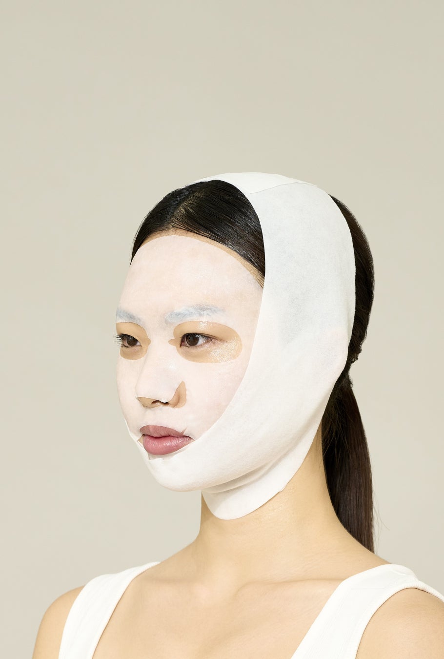 9番シートマスクはシートが上下に分かれており、下用シートだけで、開発段階で20種類以上のシートをテストしました。好みのリフティング感に合わせて使用できるよう、耳にかける穴を2つ設計しました。