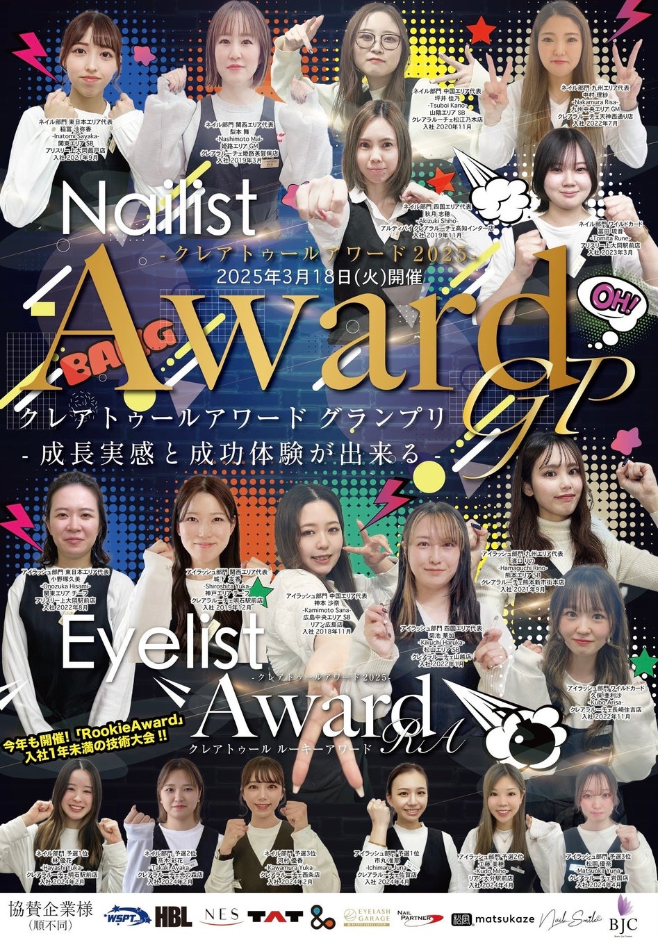 投票数が多い各エリア1名(計5名)+各エリア1位を除き投票ポイントが1番多かった者がワイルドカード枠で 選ばれアイリスト・ネイリストそれぞれ6名が2025年3月18日(火)に行われる本戦へと進出します。