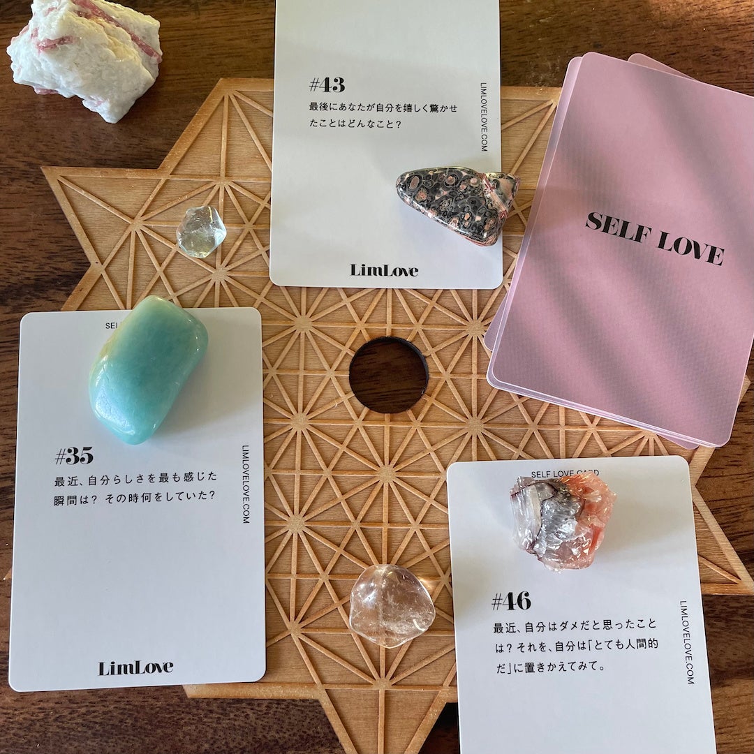 今回はLimLoveのシグネチャープロダクトである「SELF LOVE CARD®」で自分とのコミュニケーションを深める体験ができる展示や、クリスタルを使って自分の潜在意識に巡り合う「クリスタルメディスンボトル作り」ワークショップを開催します。自分を愛する冒険の旅の小道具を見つけに来てください。