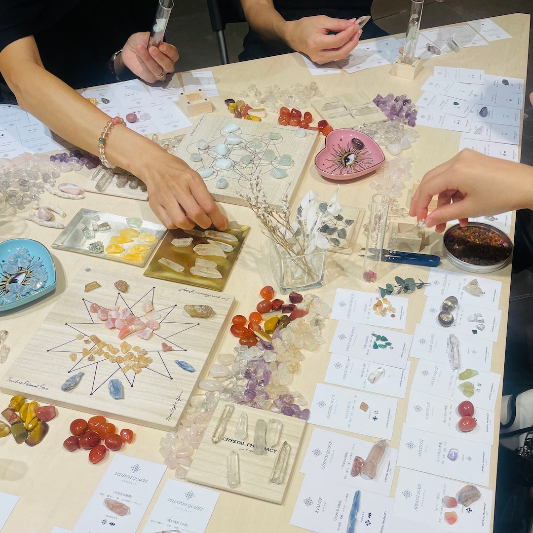 ※以下4つをお持ち帰りいただけます。➀ロゴ入りオリジナルボトル、➁クリスタル数種(店頭価格で合計1万円以上のクリスタルをお選びいただけます)、➂お使いになったクリスタルのカード、④クリスタル処方箋