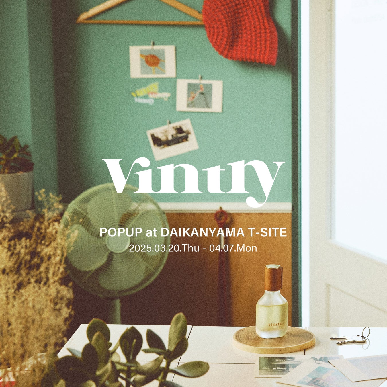 Vintage(ヴィンテージ)+ Fluttery(ときめき)= Vintry(ヴィントリー)。「落ち着き」と「ときめき」が隣り合う空間を彩るライフスタイルブランドで、Dream Amiさんがプロデュースしています。ブランドの定番アイテムであるマルチパルファムオイルをはじめ、3月7日発売の新作アイテムやPOP UP限定のオリジナルグッズを販売します。新しい季節、新しく始まる生活に寄り添うアイテムにVintryのプロダクトを。