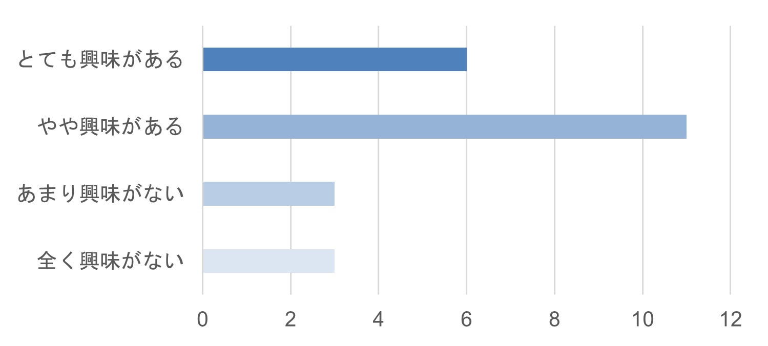 心疾患や睡眠のモニタリングができるウェアラブルデバイスに対して、6人が「とても興味がある」、11人が「やや興味がある」と回答したことから、大多数の人がこのようなウェアラブルデバイスに興味をもっていることがわかる。