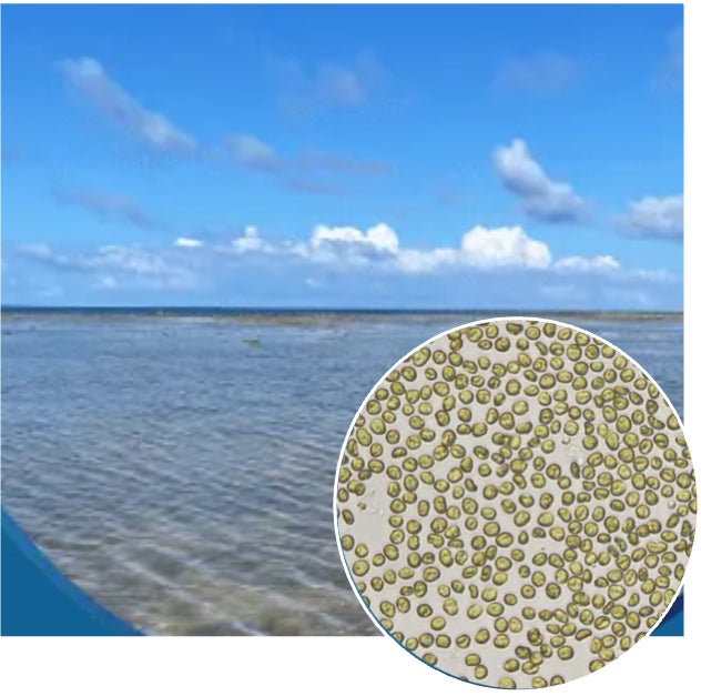 パブロバは微細藻類の一種で、沖縄本島北部沿岸域で採取されました。沖縄の強烈な太陽光を浴び、塩分濃度が劇的に変動する過酷な環境に生息していた本種は生命力に溢れた非常に強い種です。