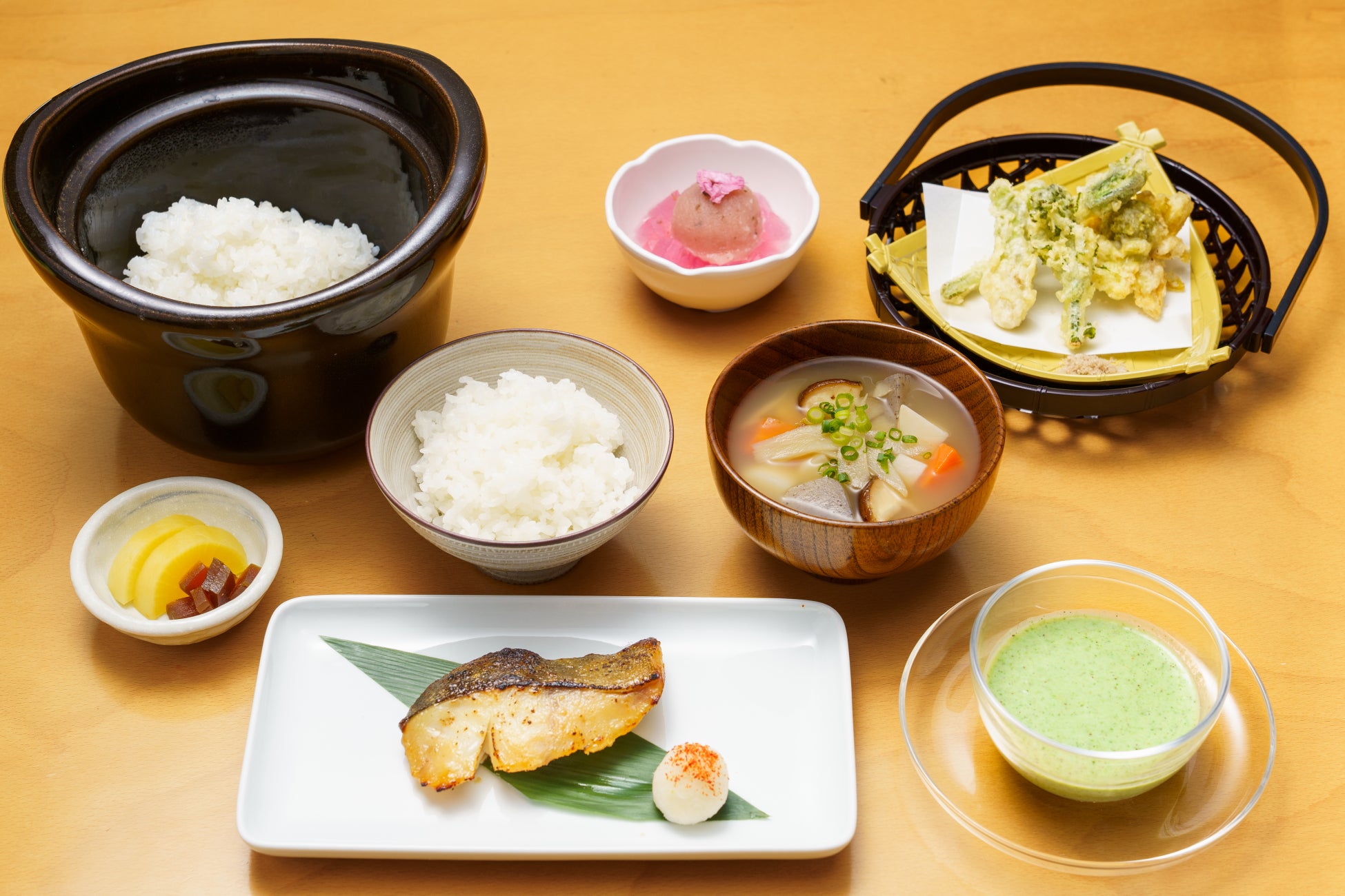 サウナと瞑想による心身の変化をより深く体感していただくため、専用の飲食メニューをご用意。土鍋炊きの白米やお味噌汁、旬の野菜の天ぷらなど、シンプルな和食を中心としたメニューを通じて、サウナと瞑想で研ぎ澄まされた五感で本来の味わいをお楽しみいただけます。一口一口じっくりと味わうこと自体も瞑想となる、普段と違った食の体験をお届けします。