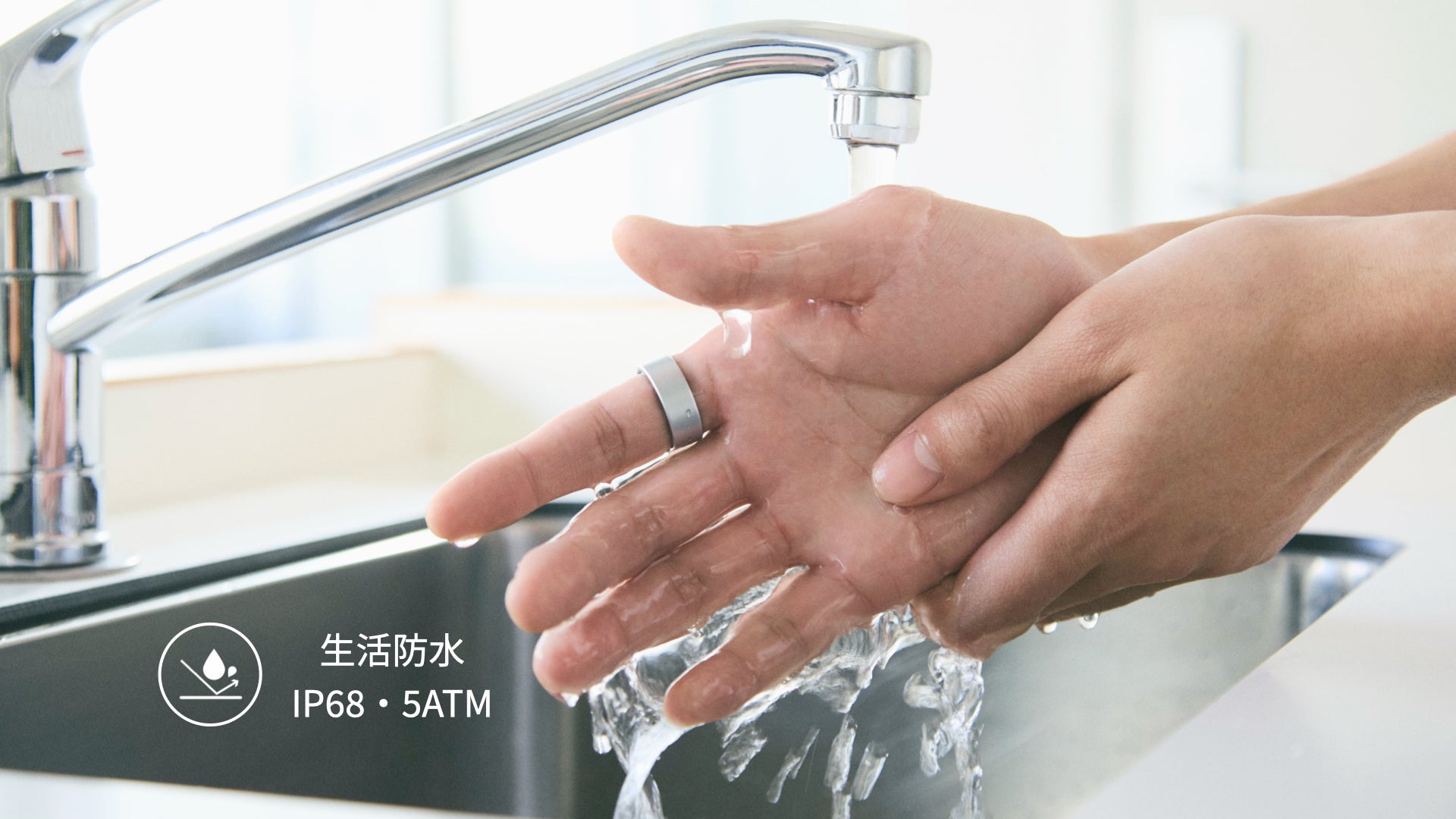 水回りの使用にも耐えられる生活防水仕様のため、手洗いやシャワー時も外す必要がなく、24時間装着可能。 汗や雨などの日常的な水濡れも気にせず使えます。