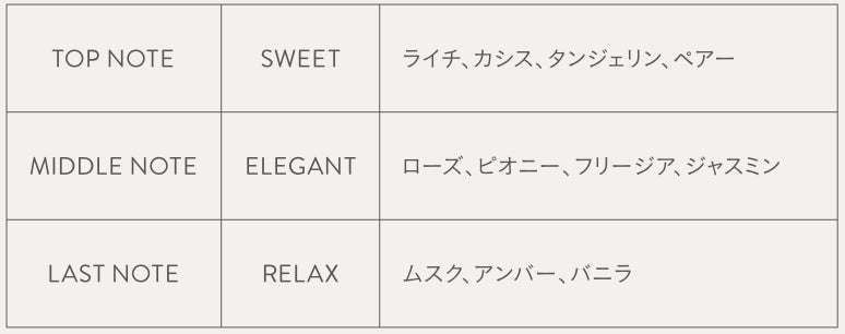 香水のように時間とともに変化する、やわらかでさりげない香り立ち。