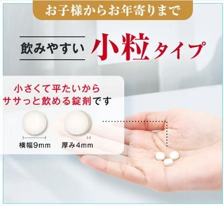 特徴4:お子様からお年寄りまで。飲みやすい小粒タイプ。