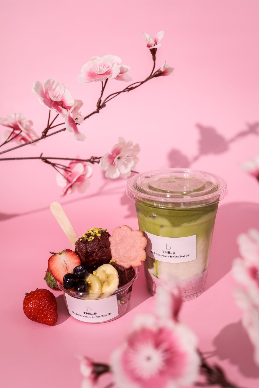 今年のお花見シーズンはTHE_Bから春満載の新商品が登場!テレビや雑誌で数多く取り上げられる東京NO.1アサイーボウルで有名なTHE_Bの春のアサイー商品「SAKURA ACAI CUP」に、桜の花と葉を想像させる春カラーのドリンク「CHIA MATCHA LATTE」。