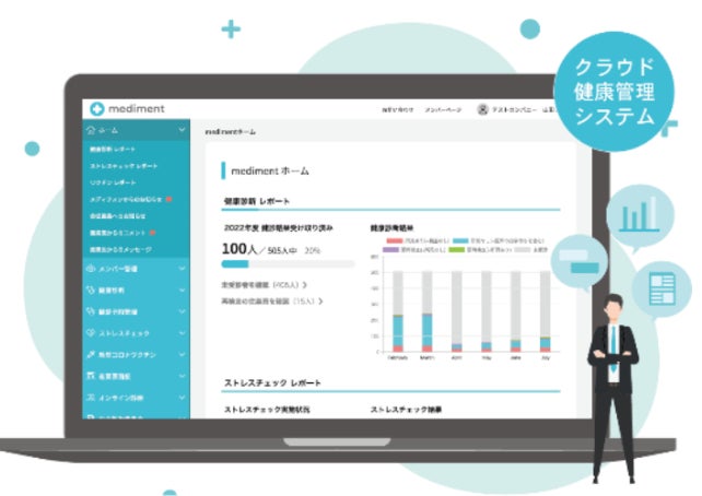 「mediment(メディメント)」は、健康経営や従業員の健康診断・ストレスチェック業務を担う人事労務担当者向けサービスです。