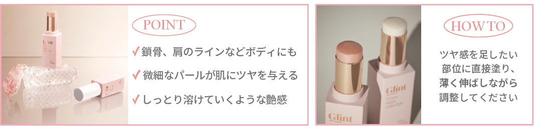 さらに、グリントの大人気アイテム「スティックハイライター」・「ハイライター」のリキッド版も登場。リキッドタイプのため、スティック版よりも潤い感のあるツヤを演出可能です。