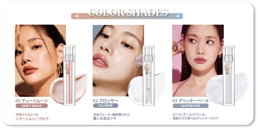 輝きのあらゆる表現を提案するメイクアップブランドとして、多彩なきらめきを放つ製品をラインナップするグリント。