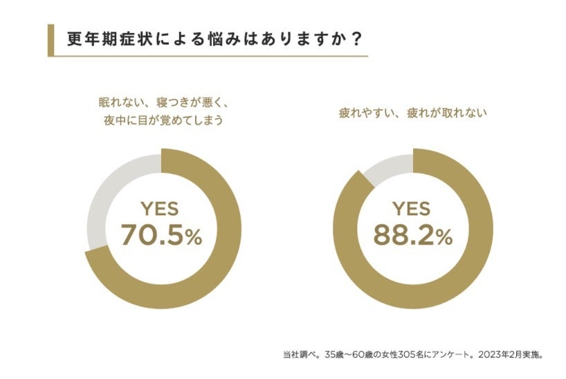 実に70.5%の人が「眠れない、寝付きが悪い、目が覚めてしまう」と答え、88.2%もの人が「疲れやすい、疲れが取れない」と回答。
