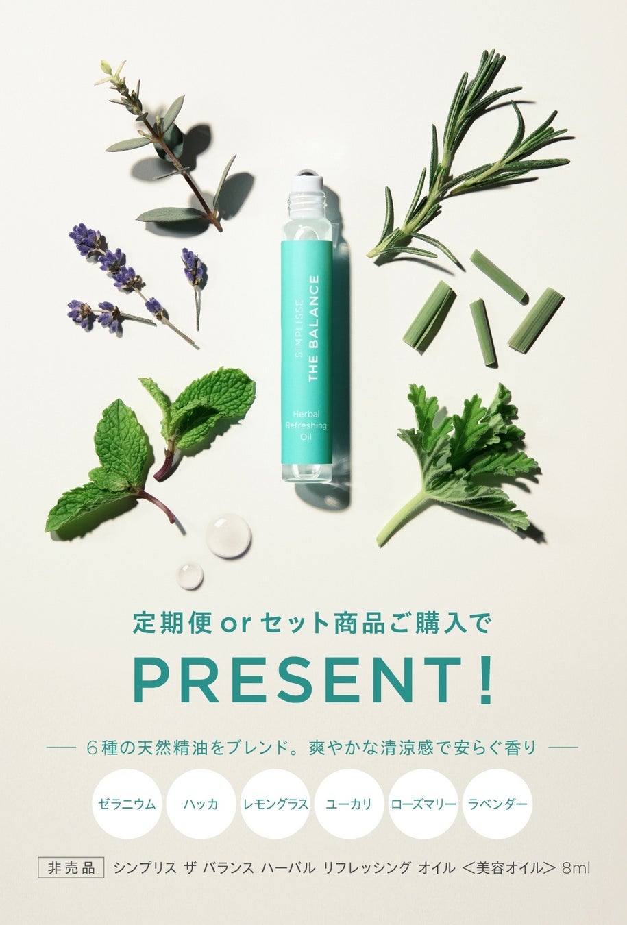 「シンプリス ザ バランス ハーバル リフレッシング オイル」(非売品)をプレゼントいたします。