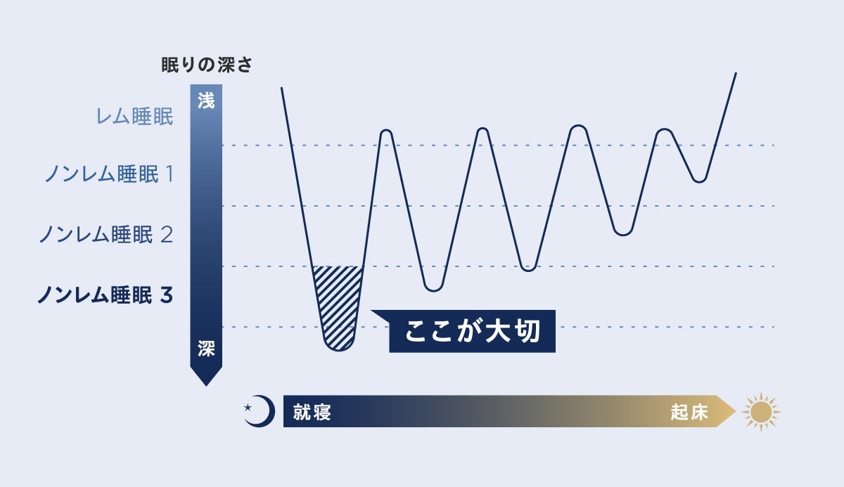 2つの機能性関与成分がアプローチし、睡眠の質(眠りの深さ)を高めます。
