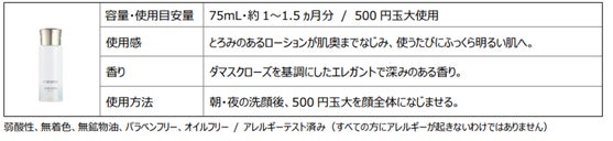 シミ予防とシワ改善のW効能をもつ有効成分「ナイアシンアミド」配合の高機能化粧水。とろみがあるのに軽やかな使用感を兼ね備えた絶妙な“とろみローション”で大人肌が輝きだす。
