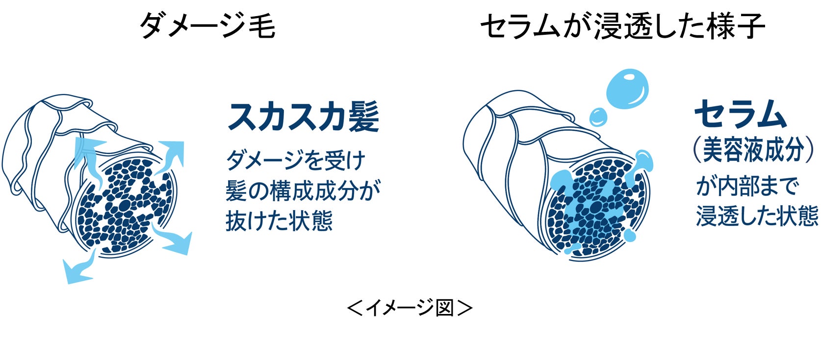 (1)髪の芯まで美容液成分(※1)がたっぷり浸透する高濃度浸透処方