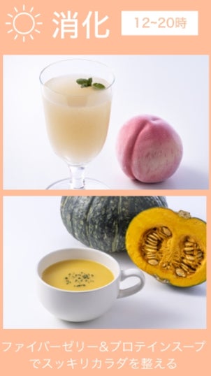 中心に、おやつ感覚で楽しめる飲むファイバーゼリーやパンプキンスープなど満足感のある