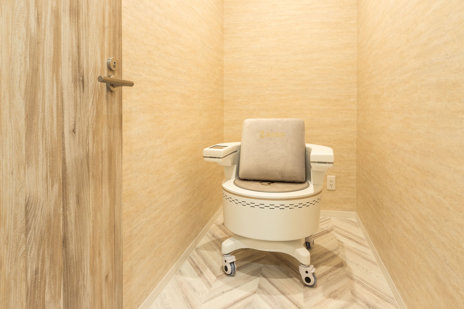 服を着たまま座るだけで「筋肉+脂肪」両方にアプローチできます。なかなか鍛えることのできない骨盤底筋や下半身を電磁パルスの刺激で座るだけで鍛えることができる美容マシンです。