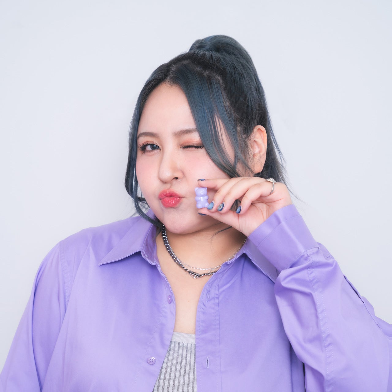 JESSICAさん:この推しのクマちゃんのリップのカラーに合わせて、それぞれがコーディネートをさせてもらいました。