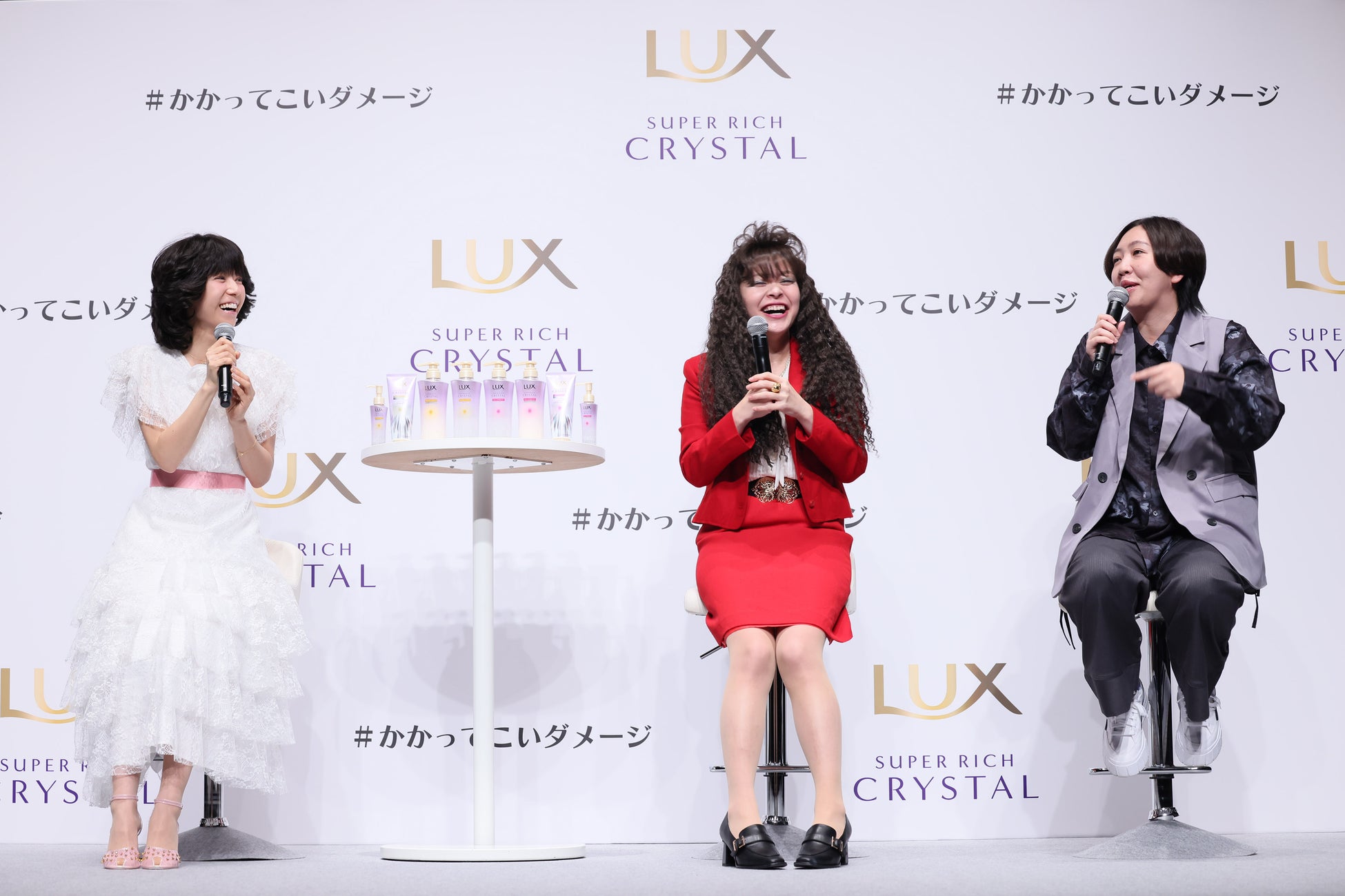 一方で荒川さんは「LUXのCMの髪型ですね!あの髪の毛がツヤツヤっと流れる様子はめちゃくちゃ憧れなので、なりたいですね…!」とコメント。お二人も「わかる!」と盛り上がり、LUXのCMといえば誰もが思い浮かぶ、サラサラなヘアスタイルへの憧れについて語っていただきました。