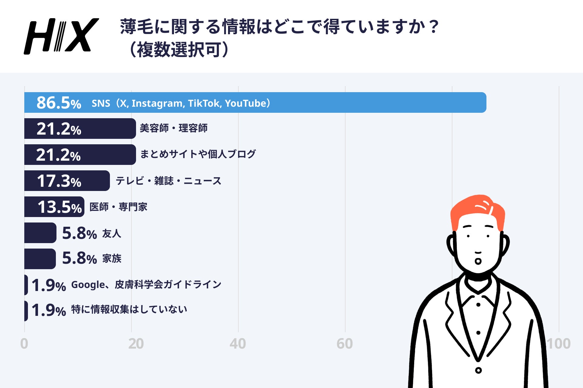 薄毛の情報、9割近くがSNS頼り、医師・専門家からの情報収集は1割強にとどまる