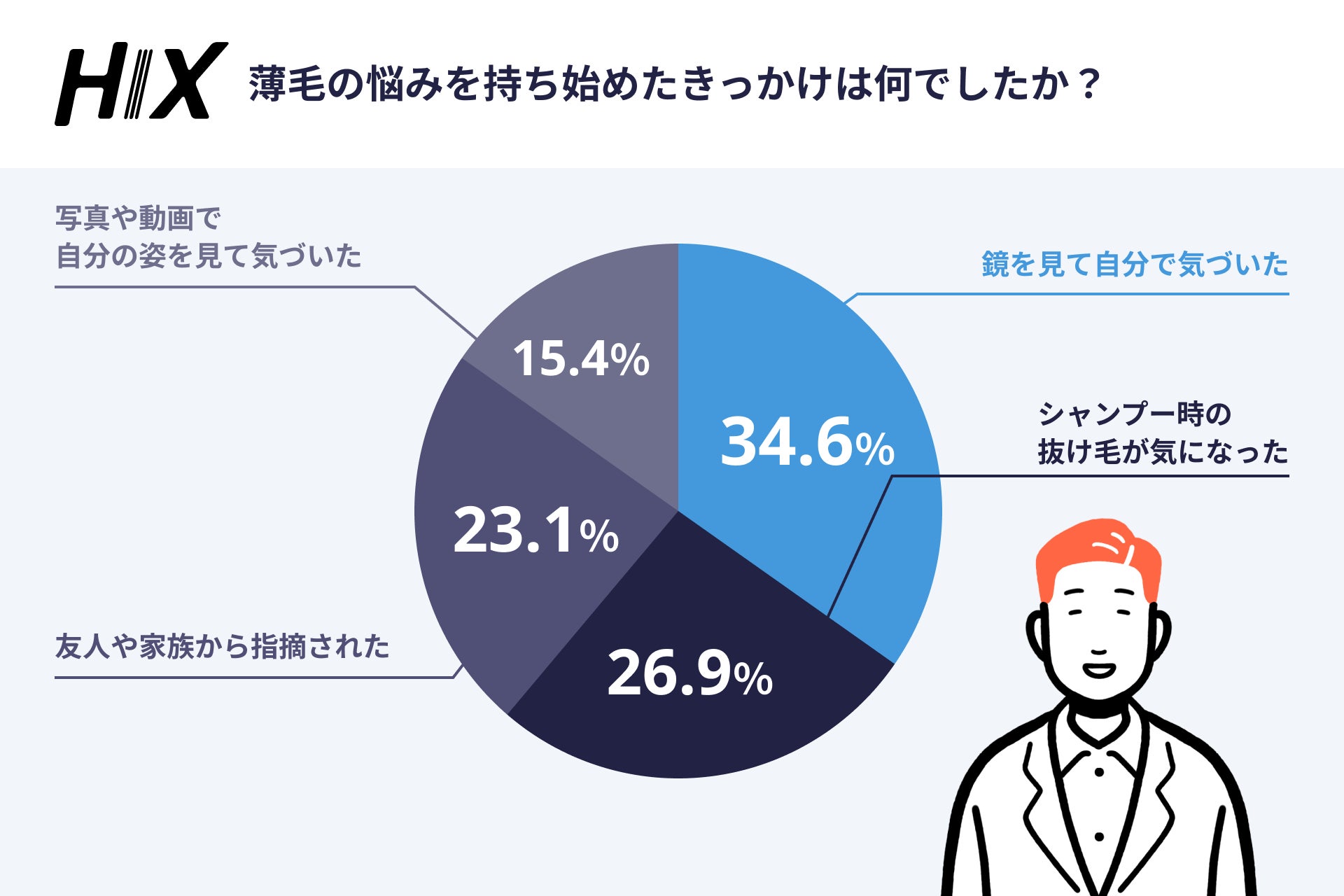 薄毛を意識するきっかけ、6割以上が「自分で気づいた」一方で他者視点も約4割