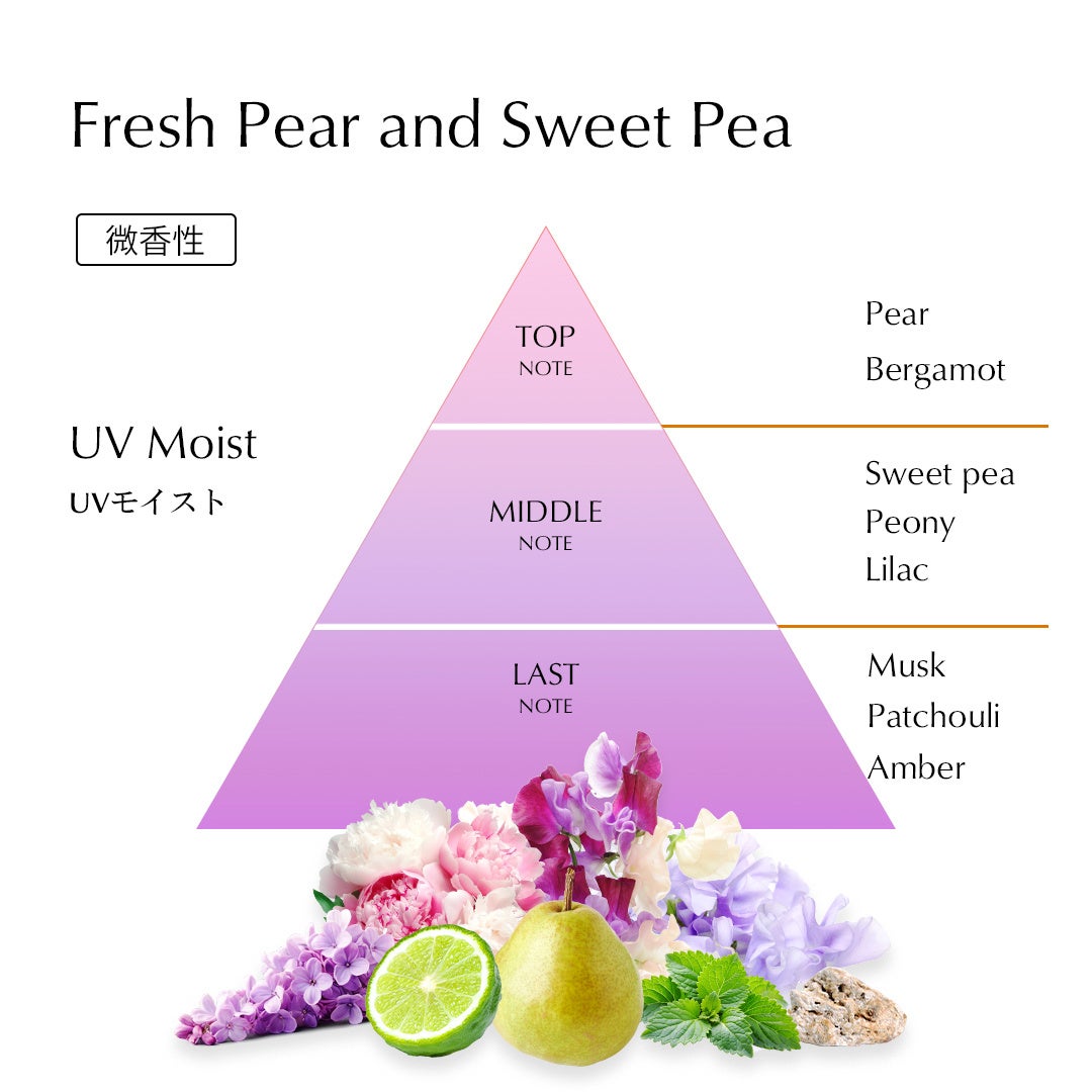 フレッシュでみずみずしいペアーの香りと透明感のある爽やかなスイートピーが重なる、上品で清潔感のある香りです。