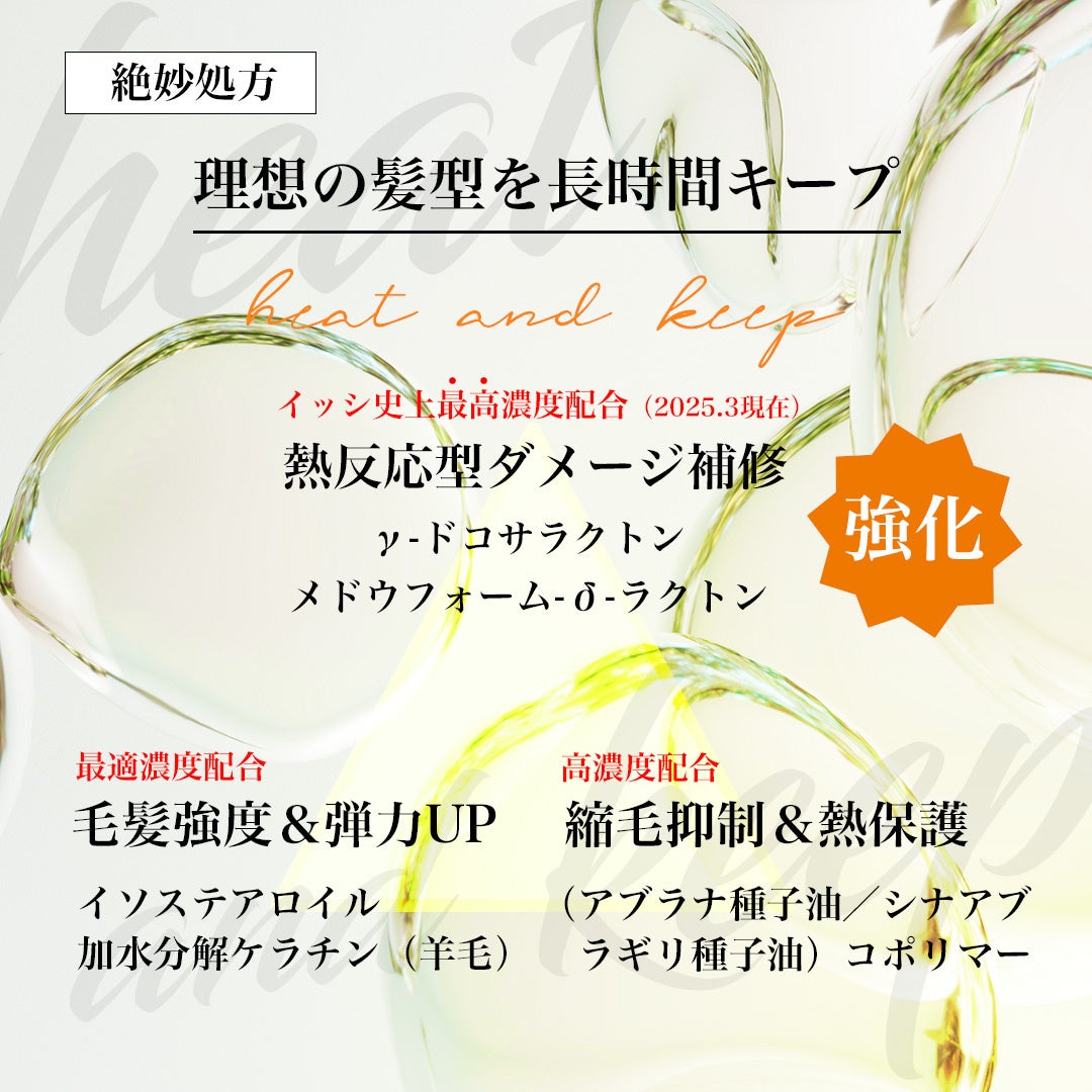熱をミカタに、理想のヘアスタイルをキープする“髪変”キープオイル。髪の保湿・補修、過度な熱からの保護、熱をミカタにしたスタイリングキープなど、アウトバストリートメントにも、スタイリングにも使用できる高機能ヘアオイル。