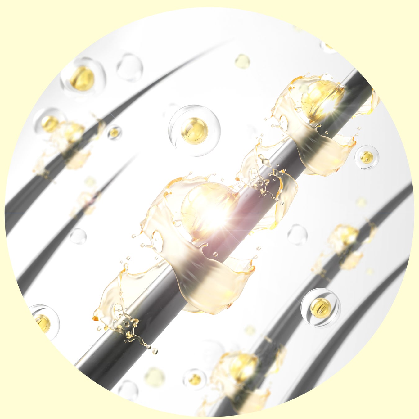 髪の縮れを抑制し、より滑らかでまとまりのある髪を実現可能に。当該原料はヘアアイロンやドライヤーの熱から髪を保護する働きがあり、過度な熱によるヒートスタイリングから髪を保護します。