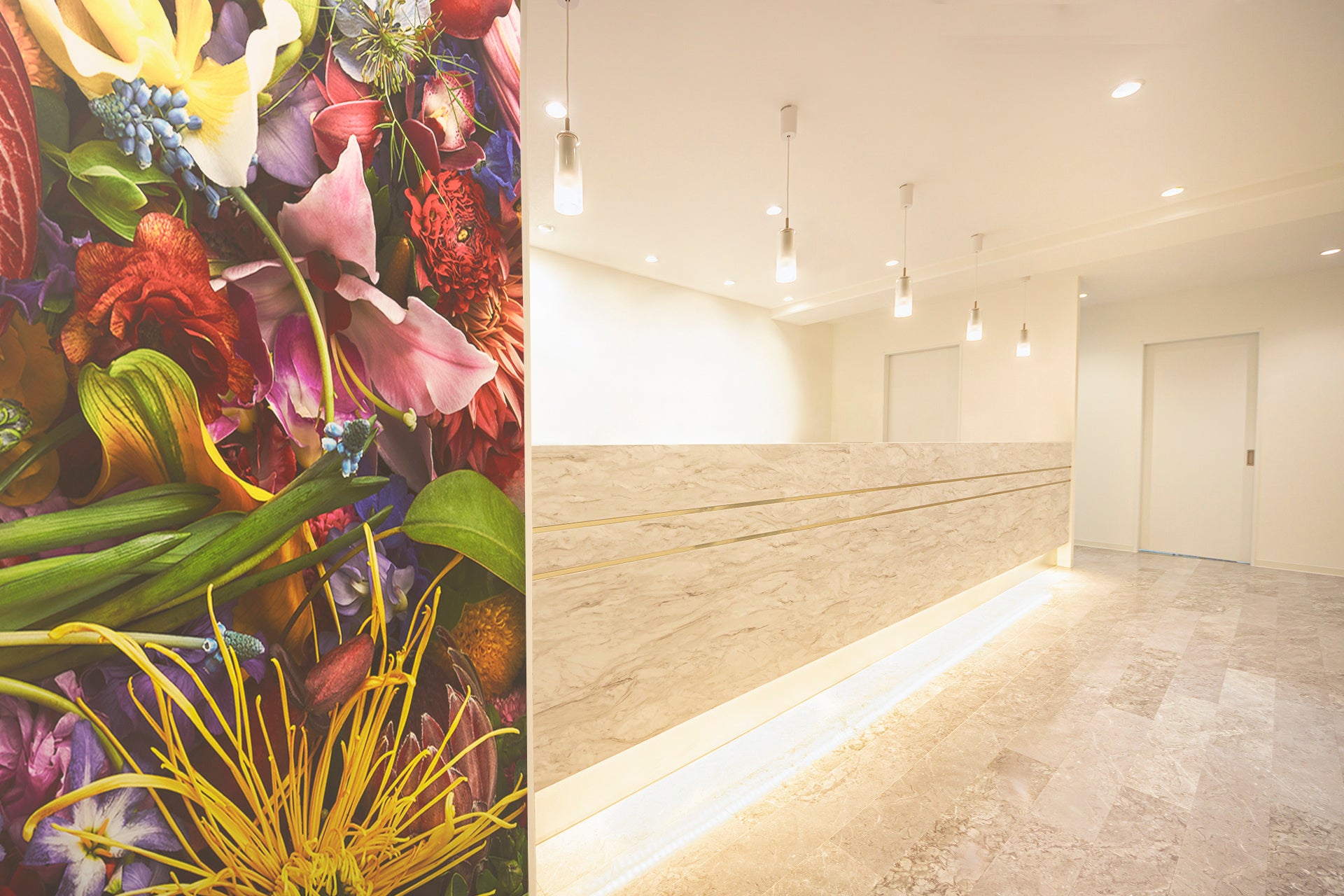 TCBグループでは、フラワーアーティスト集団 AMKK(東信、花樹研究所)のプロデュースのもと、各地域の自然・文化・気候・風土・植生などを表現した「花」のビジュアルデザインを日本全国のTCBで採用しており、ご来院いただく皆様に洗練された世界観を提供しております。