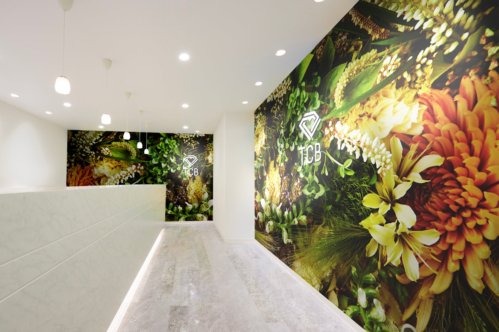 TCBグループでは、フラワーアーティスト集団 AMKK(東信、花樹研究所)のプロデュースのもと、各地域の自然・文化・気候・風土・植生などを表現した「花」のビジュアルデザインを日本全国のTCBで採用しており、ご来院いただく皆様に洗練された世界観を提供しております。