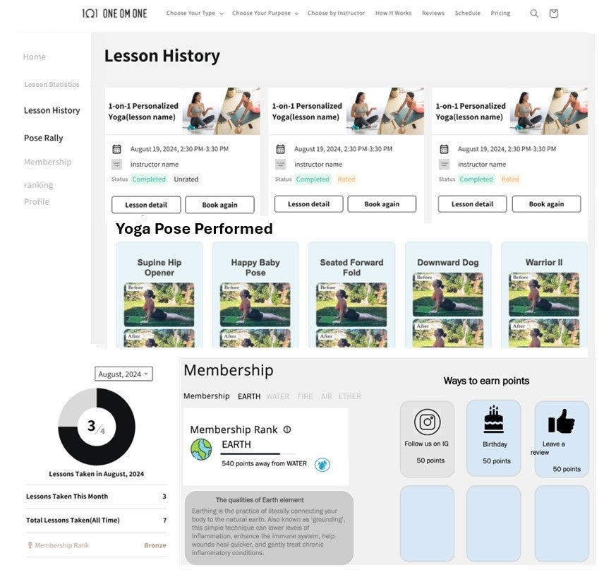 ① ユーザーポータルにて、過去のヨガポーズアーカイブや成長履歴を閲覧できるように