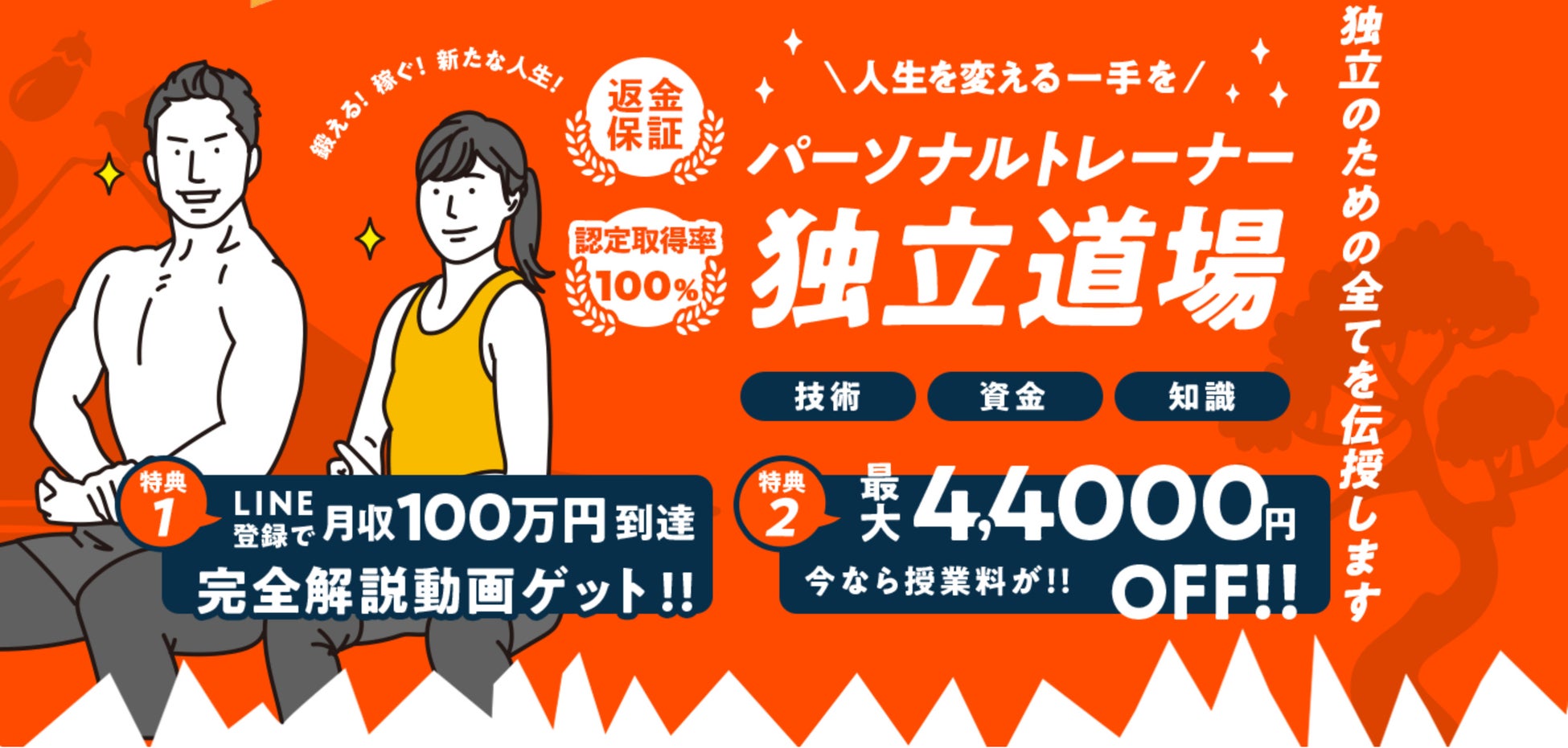 ・対象:パーソナルトレーナーを目指す方、将来的に起業を目指す個人、フリーランスとして独立したい方、キャリアアップを図りたいビジネスパーソン