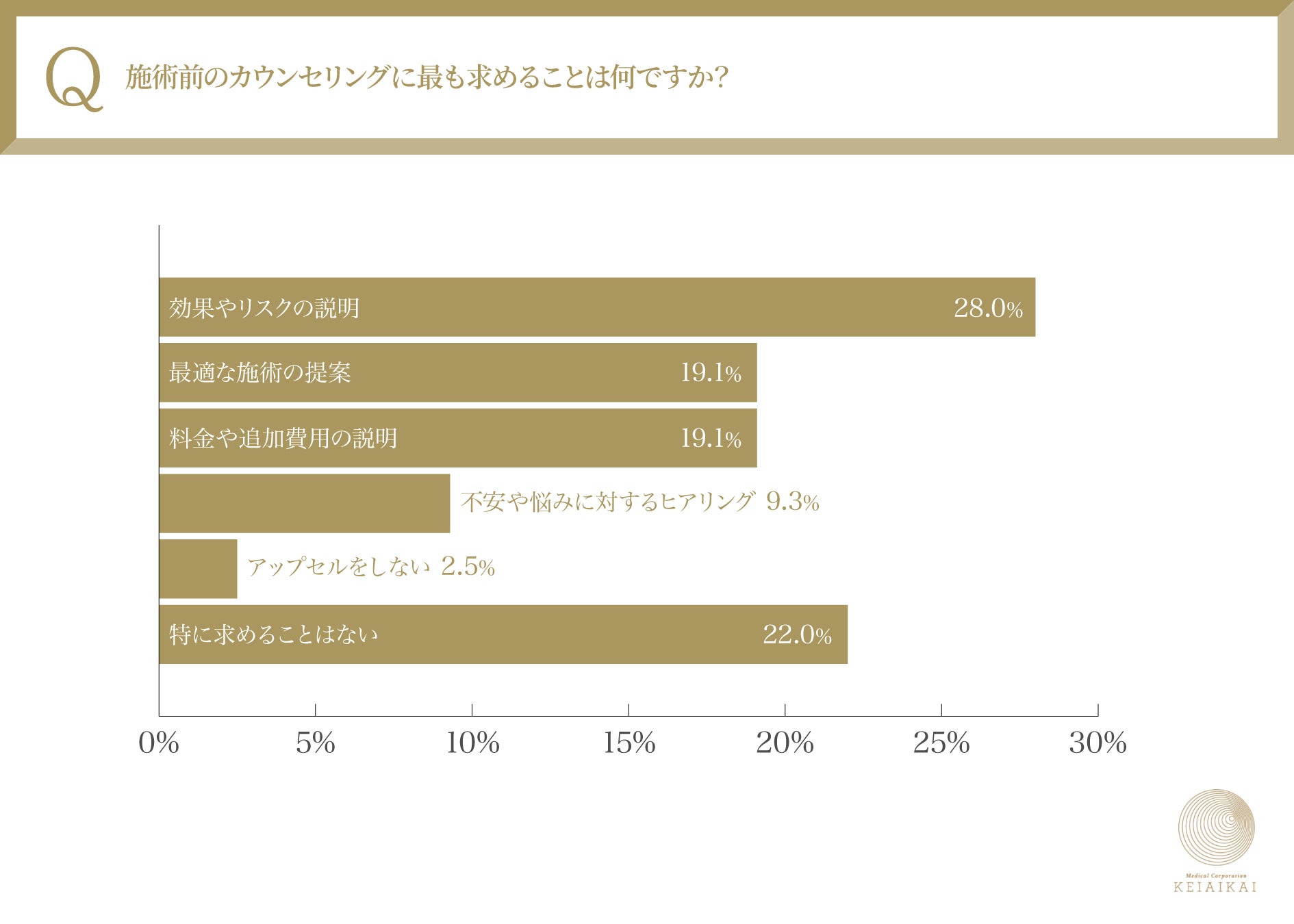 カウンセリングで求められるのは「効果やリスクの説明」(28.0%)、「最適な施術の提案」(19.1%)